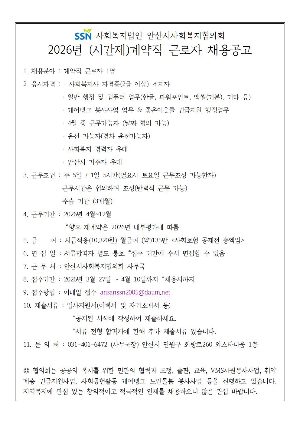 2026³â »çȸº¹Áö»ç °è¾àÁ÷ ä¿ë Àç°ø°íÇÕ´Ï´Ù.